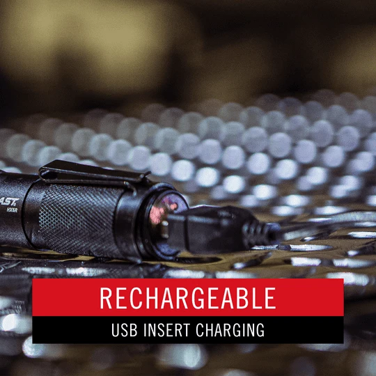 Die COAST HX5R ist die perfekte wiederaufladbare Taschenlampe für den täglichen Gebrauch. Der mitgelieferte Li-Ion Akku wird in der Lampe aufgeladen, diese kann mittels des USB- Anschlusses direkt an eine USB-Buchse gesteckt werden. Somit ist das Mitführen eines Ladekabels nicht zwingend notwendig. Es kann jedoch auch das mitgelieferte USB-Kabel zum Laden verwendet werden. Alternativ kann die Lampe auch mit einer handelsüblichen CR123A Batterie betrieben werden. Als außerordentlich praktisch erweist sich der Clip, mit dem die Lampe in zwei Richtungen fixiert werden kann. Mit all diesen Eigenschaften ist die HX5R eine handliche Allround- Taschenlampe, welche in jedem Einsatzgebiet nützliche Dienste leistet.