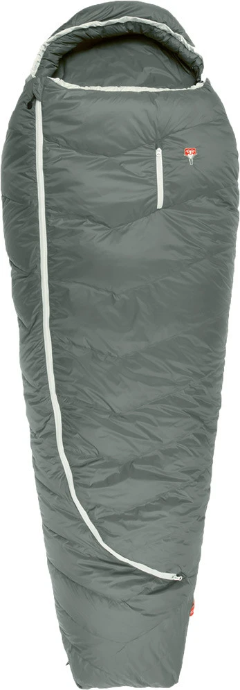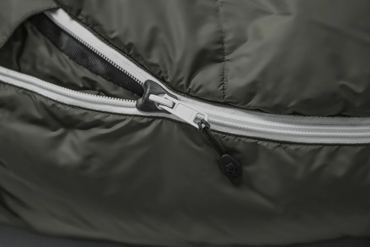 Der Zwei-Wege-Reißverschluss mit breiter Abdeckung verhindert Wärmebrücken und wenn deine Füße Frischluft brauchen, kannst du den Reißverschluss unten ein Stück öffnen. Durch die Form des Zippers liegen die Füße dann bequem auf dem Schlafsack, wenn du sie aus dem Schlafsack holst. Der Reißverschluss ist durch seine weiße Farbe in der Dunkelheit besser sichtbar.