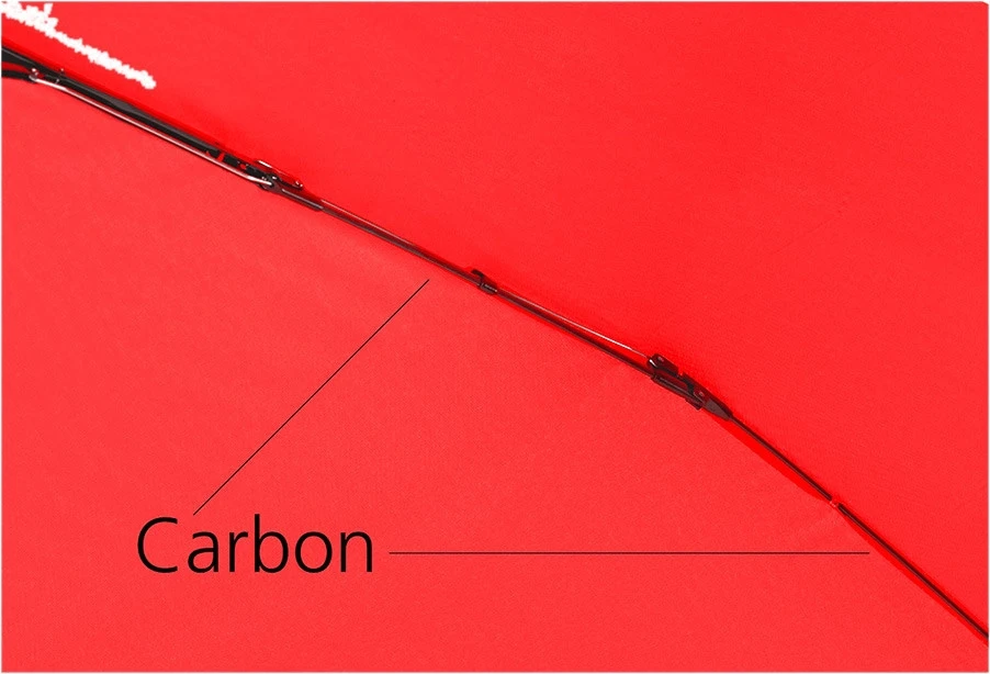 Das Obermaterial ist robustes Polyester mit einer zuverlässigen, stark wasserabweisenden Behandlung. Es kommen weiterhin Carbon und Aluminium zum Einsatz, sodass der Schirm sehr leicht bleibt.