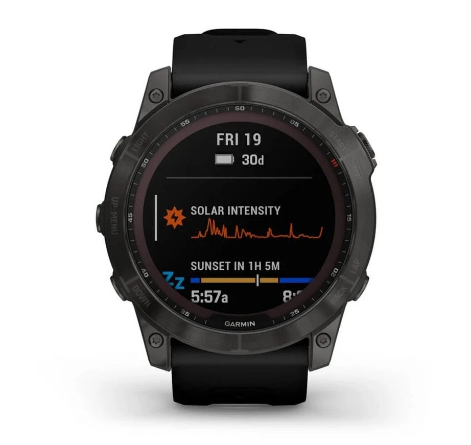 Stell dich mit der robusten Fenix 7X Sapphire Solar GPS-Multisport-Smartwatch jeder Herausforderung beim Sport oder bei Outdoor-Aktivitäten. Die kratzfeste Power Sapphire Solar-Ladelinse nutzt die Sonnenenergie und verlängert so die Akkulaufzeit für innovative Trainingsfunktionen, Sport-Apps sowie Sensoren für Gesundheitsüberwachung und mehr.