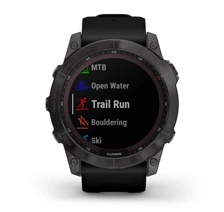 - Nutze vorinstallierte Aktivitätsprofile für Trailrunning, Bahntraining, Schwimmen, Laufen, Radfahren, Wandern, Rudern, Skifahren, Golfen, Surfen, Indoor-Klettern und mehr.