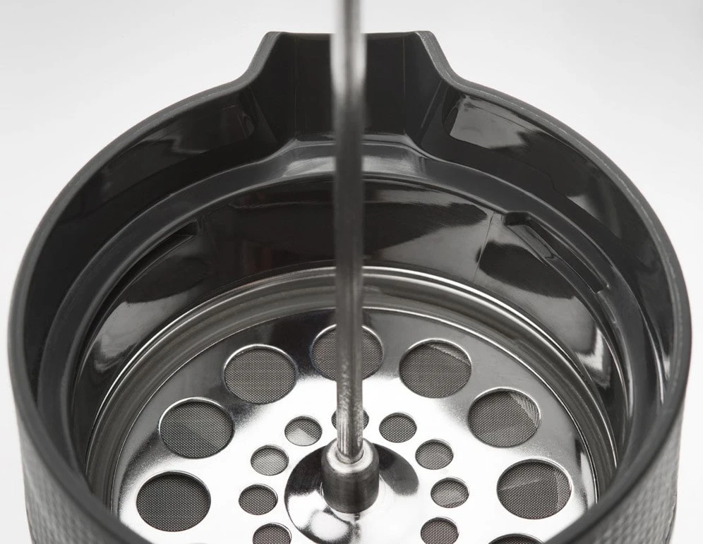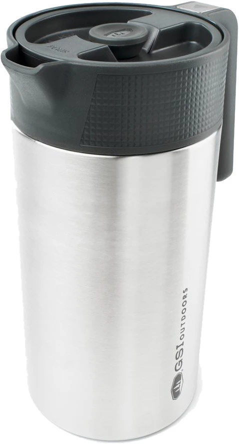 Die isolierte GSI Outdoors Glacier Stainless JavaPress ist aus Edelstahl, lebensmittelechtem Polypropylen und Silikon gerfertigt. Dank der doppelwandigen Konstruktion ist dein Kaffee nach dem Zubereiten länger warm. Durch den Einsatz des Silikon-Dichtungsrings rund um das Sieb der French Press kommen Kaffekrümel nicht mehr in deine Tasse. Der robuste Henkel und der Drehmechanismus des Deckels sind unterwegs praktisch.