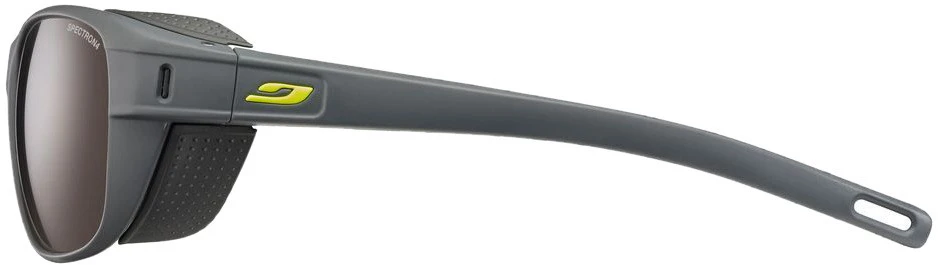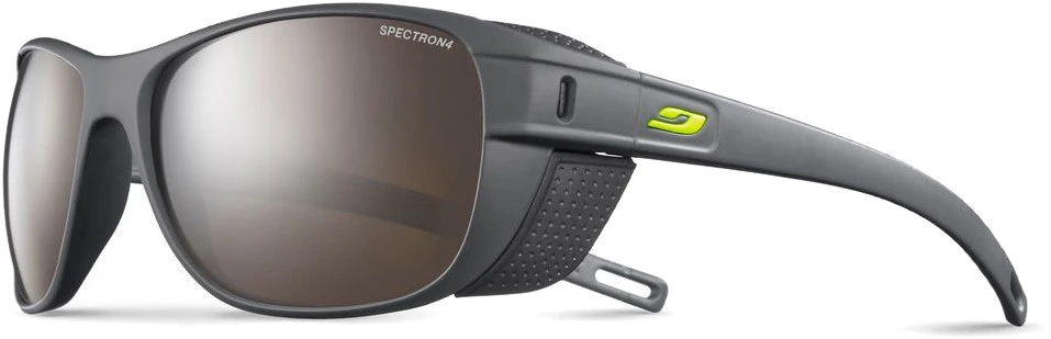 Mit der Camino Sonnenbrille von Julbo mit Spectron 4 Gläsern sind alpine Wanderungen und andere Outdoor-Aktivitäten mit extrem viel Sonne kein Problem. Die Sonnenbrille schützt deine Augen auch gut von der Seite durch die entfernbaren Seitenteile. Die Gläser aus Polycarbonat sind angenehm groß für ein uneingeschränktes Sichtfeld. Die Bügel sind für guten Halt geformt und elastisch zugleich.