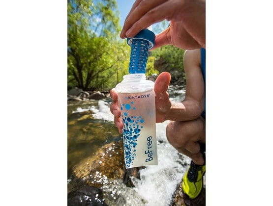 Das Katadyn BeFree Water Filtration System 1 L sorgt dafür, dass du sehr einfach und schnell unterwegs Wasser filtern kannst, wenn du Bedenken bezüglich der Trinkbarkeit des Wassers aus Flüssen oder Seen hast. Du füllst Wasser in die Flasche ein, schraubst den mit einem Filter versehenen Deckel drauf und kannst entweder direkt trinken oder Wasser herausquetschen.