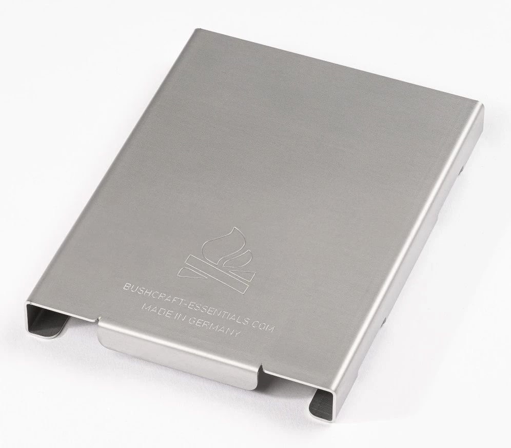 • Dient als stabile Unterlage für die Bushbox LF, die sich mit nur einem Handgriff in die dafür vorgesehenen Aussparungen des Einschubs einrasten lässt. Praktisch auch auf unebenem Gelände wie Sand oder Schnee. Gleichzeitig schützt der Einschub den Untergrund vor heißer Glut und fängt etwaige Feuerrückstände auf.