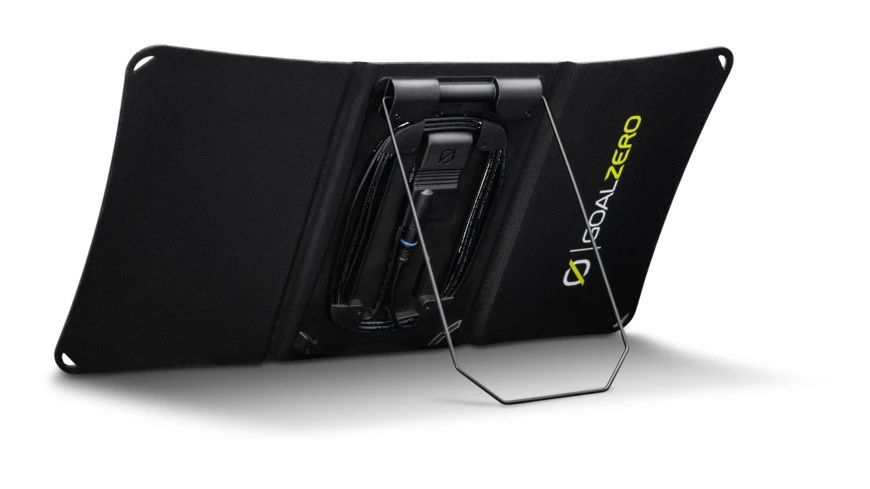 Mit dem Goalzero Nomad 20 hast du eine mittelgroßes Solarpanel für unterwegs zur Hand. Das Panel ist faltbar und robust, perfekt also für die Nutzung unterwegs. Sehr praktisch ist der integrierte Ständer, der eine Arretierung in mehreren Positionen zulässt. So ist das Solarpanel stets optimal ausgerichtet. Es ist ein 8mm Kabel mit USB-Anschluss vorhanden, sodass deine Geräte direkt geladen werden können. Es können damit auch weiter Solarmodule dazu geschaltet werden. Du kannst natürlich auch eine Powerbank am Nomad 20 aufladen und später den Strom an deine Geräte weitergeben. Das Nomad 20 selbst speichert keinen Strom.