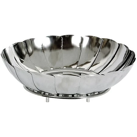 Aus 18 beweglichen Lamellen bestehende Feuerschale aus Edelstahl.