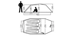 Die zwei Eingänge bieten bequemen Zugang sowie diverse Möglichkeiten zum Öffnen der Eingänge, die einerseits Schutz vor Wind bieten und andererseits für Durchlüftung sorgen. Die fest verankerten Stangenenden und die Doppelösen im robusten Gewebe geben dem Innengestänge sicheren Halt an der Firststange.