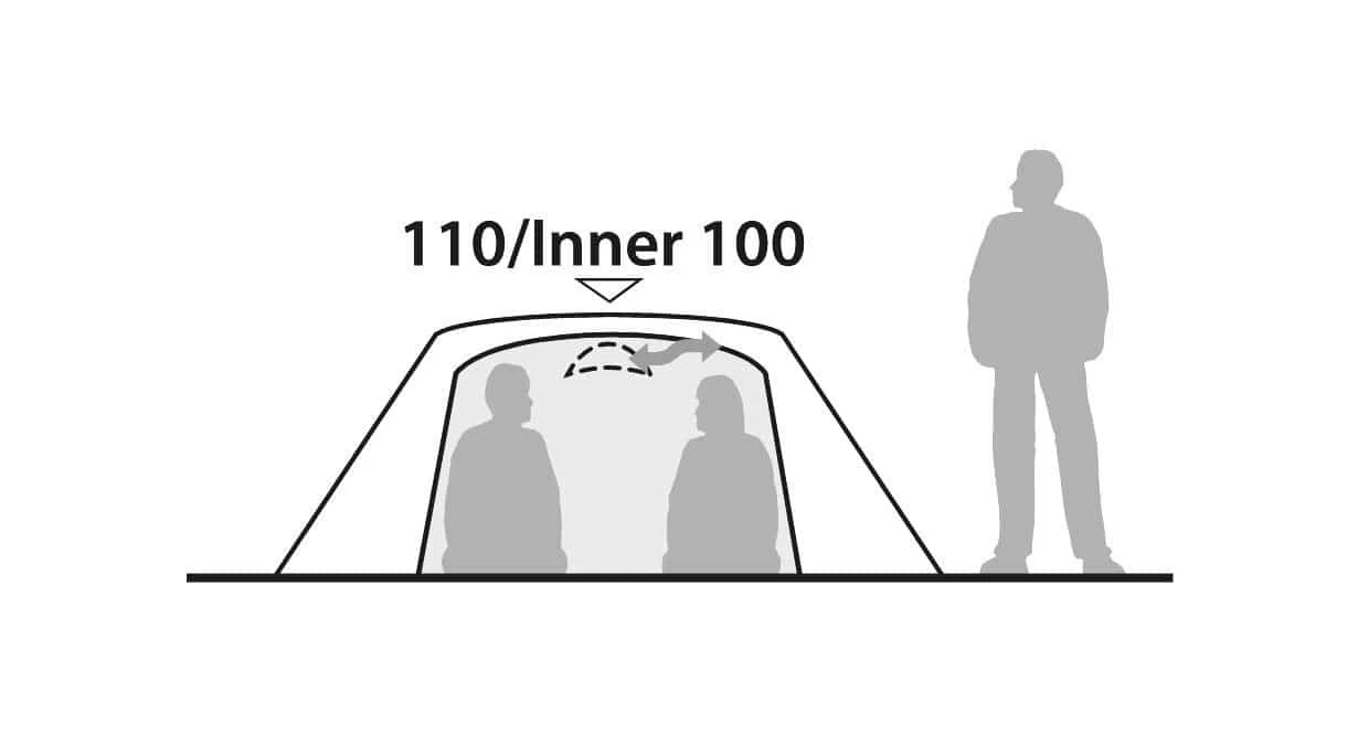 Die Kombination aus Kuppelkonstruktion und kurzer, querlaufender Firststange bietet flexibel nutzbaren Wohn-, Koch- und Stauraum. Dank der besonders großen Höhe und Breite im Inneren habt ihr an Schlechtwettertagen genug Raum zum Abwettern.