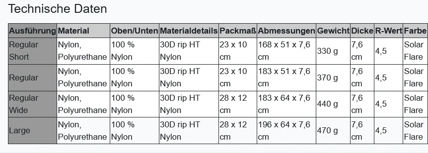 - Dicker, aber nicht schwerer: Eine Dicke von 7,6 cm ermöglicht höchsten Outdoor-Komfort bei gleichem Gewicht wie das Vorgängermodell.